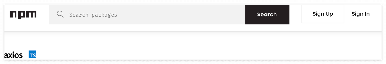 - axios의 경우, 패키지 이름 옆에 "TS" 가 붙어있고, 기본적으로 타입정의를 제공하는 패키지이기때문에 따로 타입정의를 설치해줄 필요가 없다.