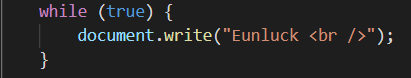 while 뒤의 조건이 변함없이 true 이기 때문에 끝없이 Eunluck 이 작성된다. 삐임