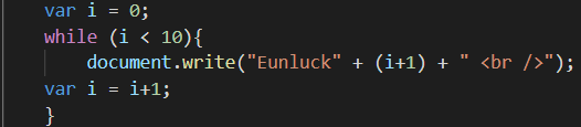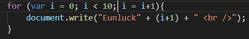 document.write('Eunluck <br />');