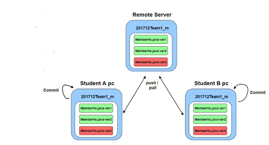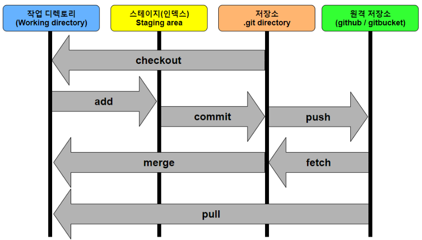 작업 영역(pc)과 저장소의 동기화 작업이 네트워크를 통해 이루어진다.