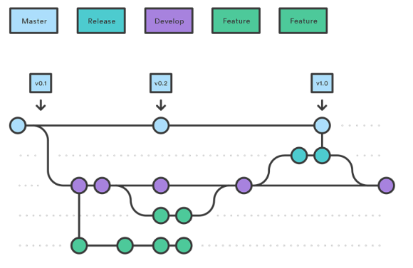 - Release브랜치를 따로 운용함으로써, 배포업무와 관련없는 팀원들은 병렬적으로 Feature 브랜치에서 이어서 기능을 개발할 수 있다.